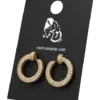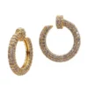 Adorn your ears with these stunning Pave Crystal Huggie Hoop Earrings. These captivating earrings offer a modern and luxurious take on a classic hoop design. The thick, circular hoop is completely covered in a brilliant pavé of sparkling crystals, which catch the light from every angle, creating a dazzling effect. A hinged post secures the earring in place, providing a comfortable and secure fit that “hugs” the earlobe.