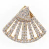 These exquisite fan-shaped earrings feature a striking design with a beautiful gold-toned finish and are completely paved with sparkling cubic zirconia stones, offering a luxurious and captivating shine.