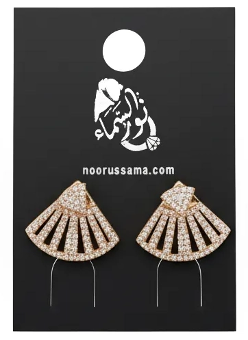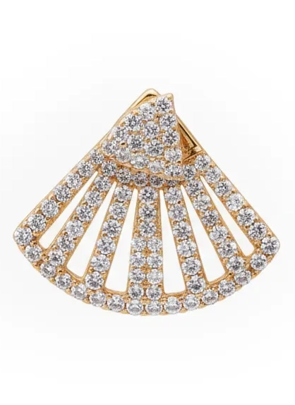 Elevate your look with these stunning Fan-Shaped Earrings, a perfect blend of modern elegance and timeless design. The intricate fan design is meticulously crafted, featuring a radiant gold-toned base. Each earring is generously adorned with shimmering, high-quality cubic zirconia stones that catch the light from every angle, creating a captivating sparkle.