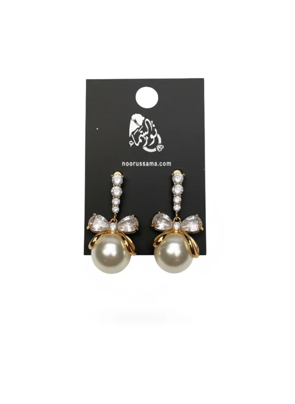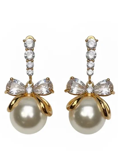 These enchanting earrings combine a graceful, intricate bow and butterfly top with a luminous, large pearl drop. They are a perfect blend of whimsy and elegance, adding a touch of sophisticated charm to any look.