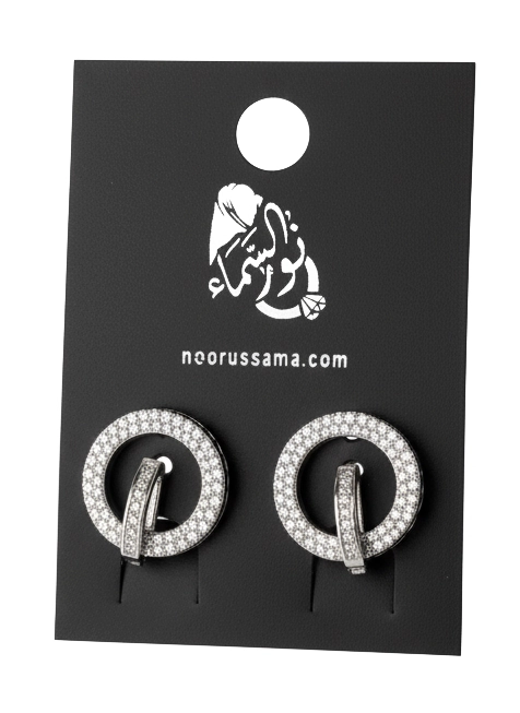 Elevate your style with the Geometric Circle Drop Earrings, a perfect fusion of modern design and classic sparkle. These earrings feature a bold, circular silhouette that is fully adorned with a brilliant pavé setting, creating a stunning field of continuous shimmer. A smaller, sleek bar gracefully hangs within the circle, adding an asymmetrical detail that brings a contemporary edge and dynamic movement to the design.