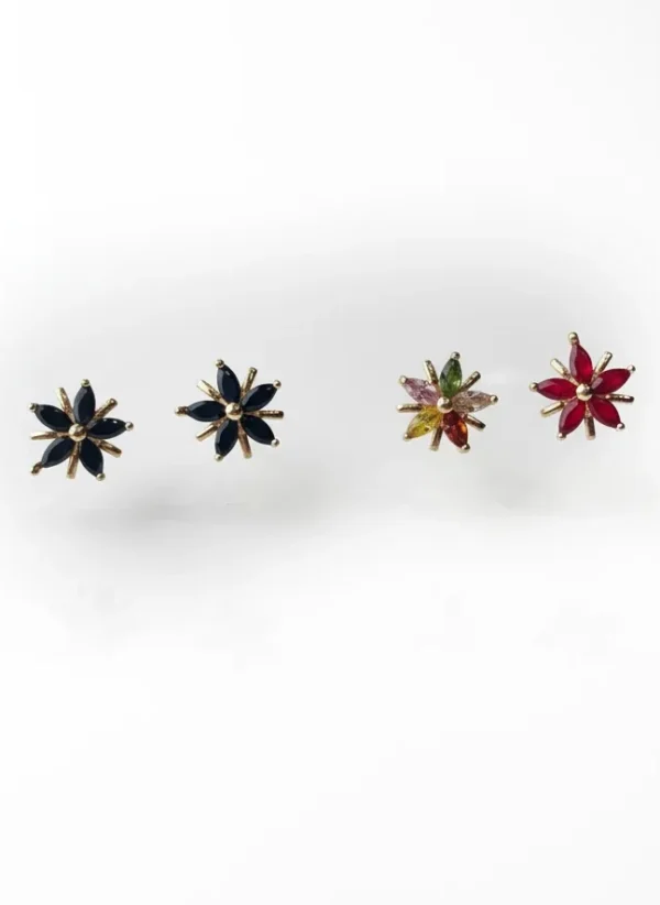 Make a sophisticated statement with these stunning stud earrings, a perfect fusion of bold design and intricate detail. The earrings feature a striking starburst silhouette, with a central point from which five deep, marquise-cut stones radiate outward. This elegant arrangement creates a sense of dynamic motion and modern flair, giving them a unique and captivating presence.