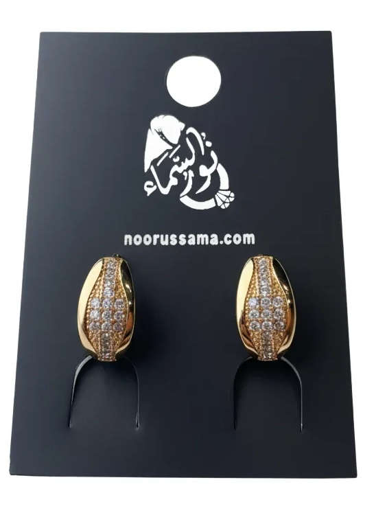 These sleek and contemporary earrings are a testament to modern artistry and minimalist elegance. The sculptural, tapered design offers a unique and sophisticated silhouette that beautifully contours the earlobe. The front surface is meticulously adorned with a brilliant pavé of cubic zirconia stones, creating a mesmerizing, textured sparkle that catches the light from every angle.