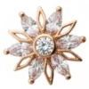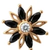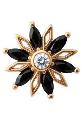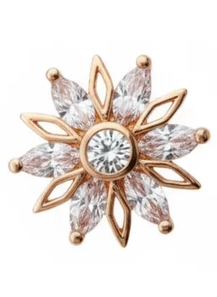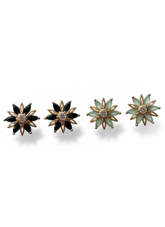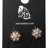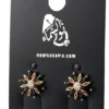 These striking stud earrings feature a starburst or flower motif with sleek, marquise-cut stones and a radiant central crystal, creating a bold yet elegant accessory with a distinct sense of style.
