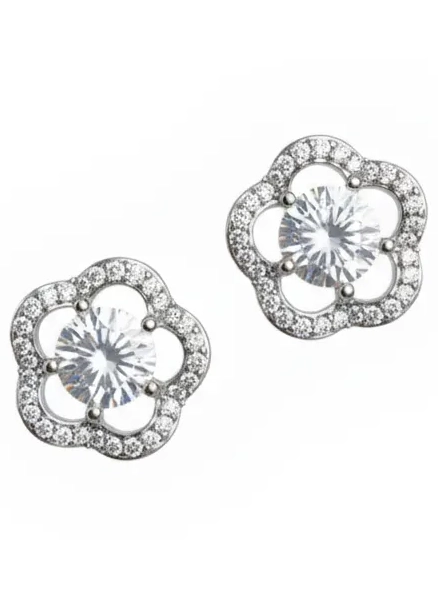Adorn yourself with the subtle yet striking beauty of these Radiant Floral Bloom Stud Earrings. Inspired by the timeless elegance of nature’s blossoms, these earrings feature a captivating floral design that effortlessly enhances any look. Each earring is meticulously crafted with an open-petal silhouette, framing a brilliant, central stone that catches and reflects light with every movement. The polished, pave-set accents along the petals add a layer of texture and sparkle, creating a sense of dimension and luxury.
