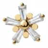 These delicate stud earrings feature a dazzling starburst design, with radiant baguette and round-cut stones arranged to create a brilliant, floral-inspired sparkle.