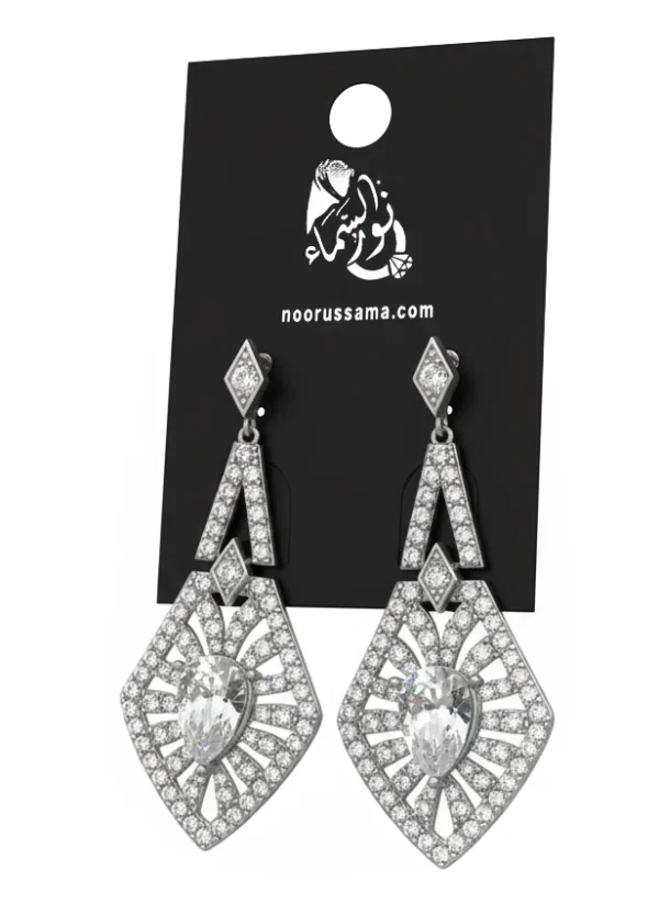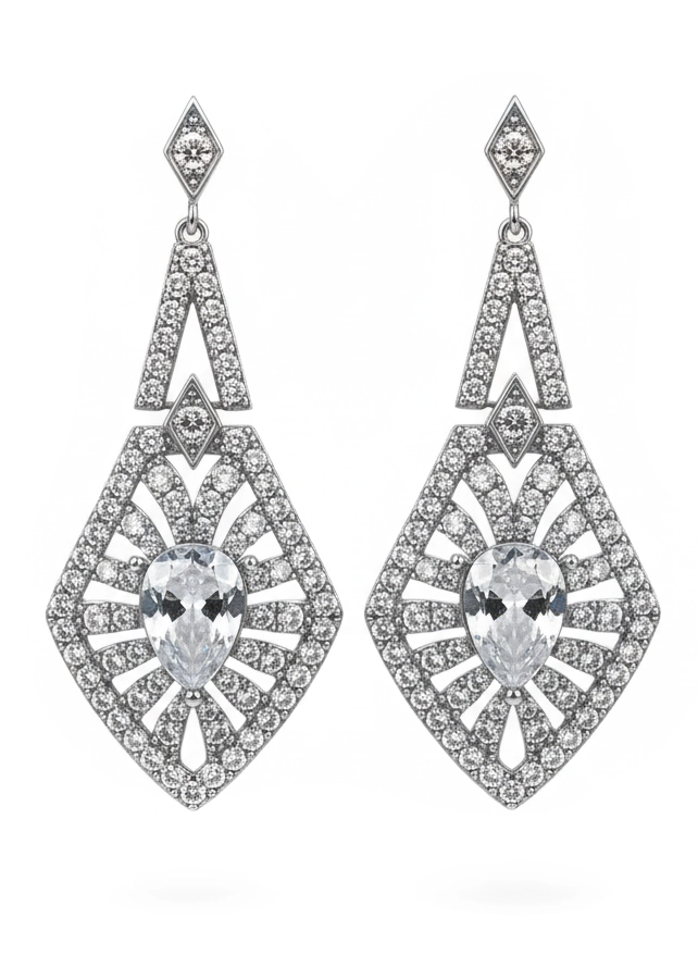 Inspired by the ornate elegance of the Art Deco era, these earrings are a testament to exquisite craftsmanship and artistic vision. The geometric lines and radiant stone placement create a sense of movement and luxury, ensuring they are the focal point of any ensemble. Despite their grand appearance, they are designed to be lightweight and comfortable, making them perfect for red carpet events, weddings, or any occasion where you want to feel exceptionally glamorous. These earrings are a timeless treasure that adds a touch of dramatic sparkle and refined flair to your collection.